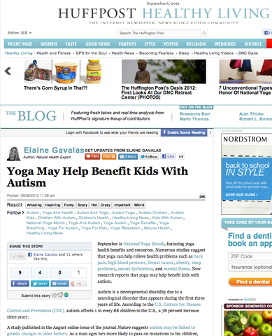 Elaine's Latest Huffington Post Blog - Yoga Benefits Kids with Autism