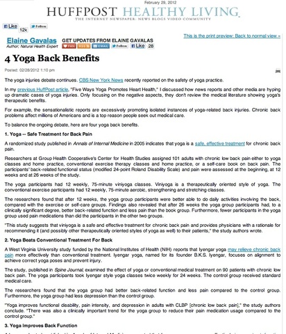 Elaine's Latest Huffington Post Blog - 4 Yoga Back Benefits " >